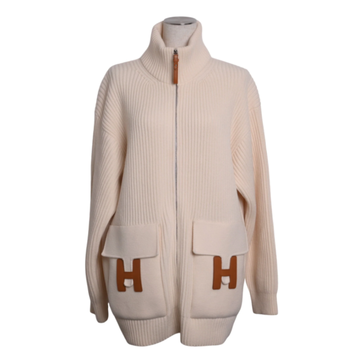 ニットブルゾン Hロゴポケット ウール アイボリー 40