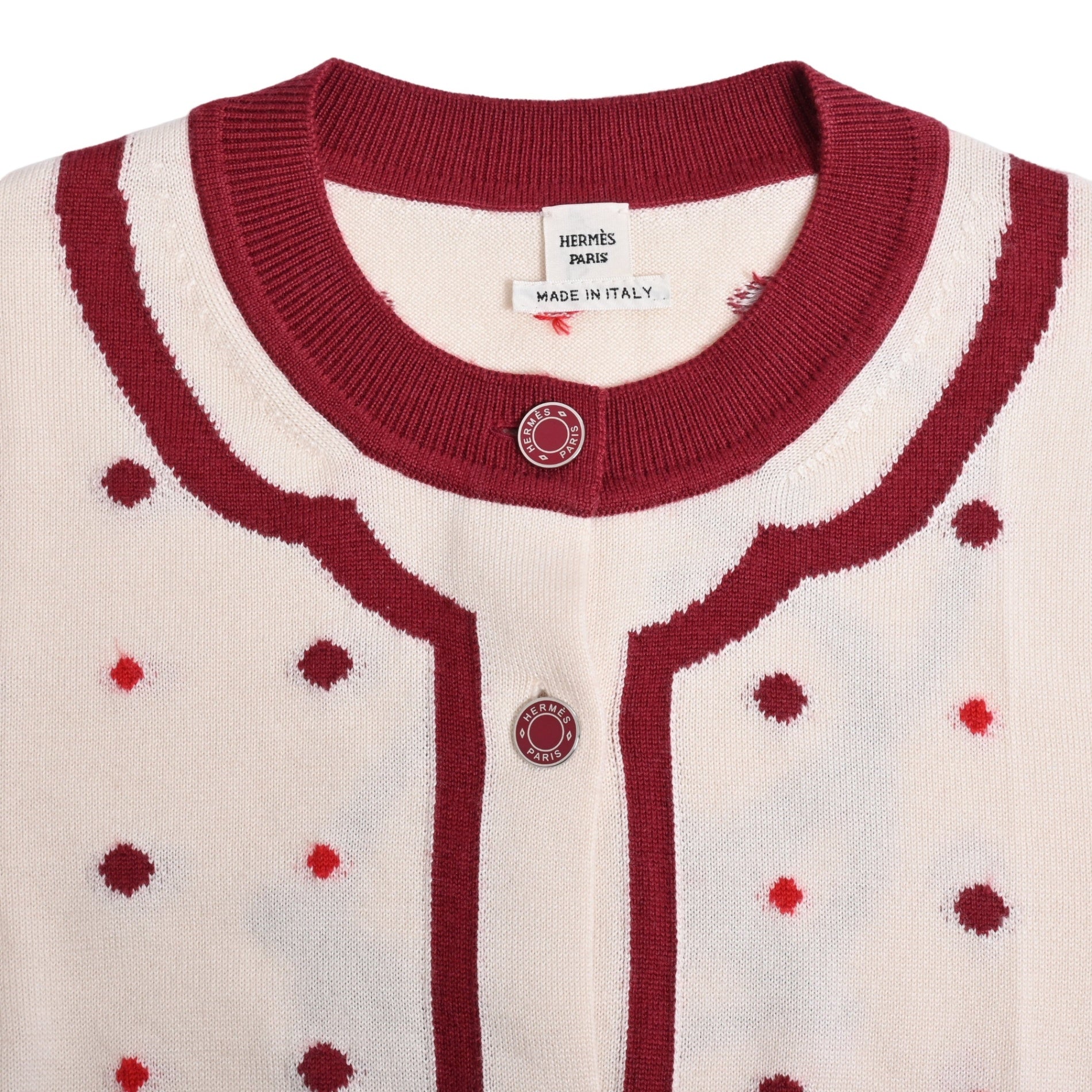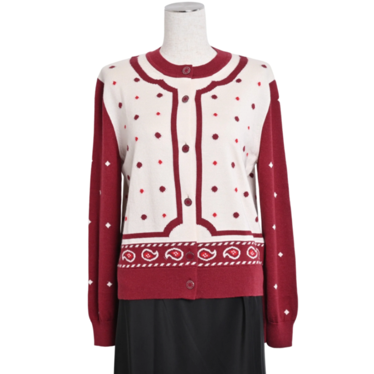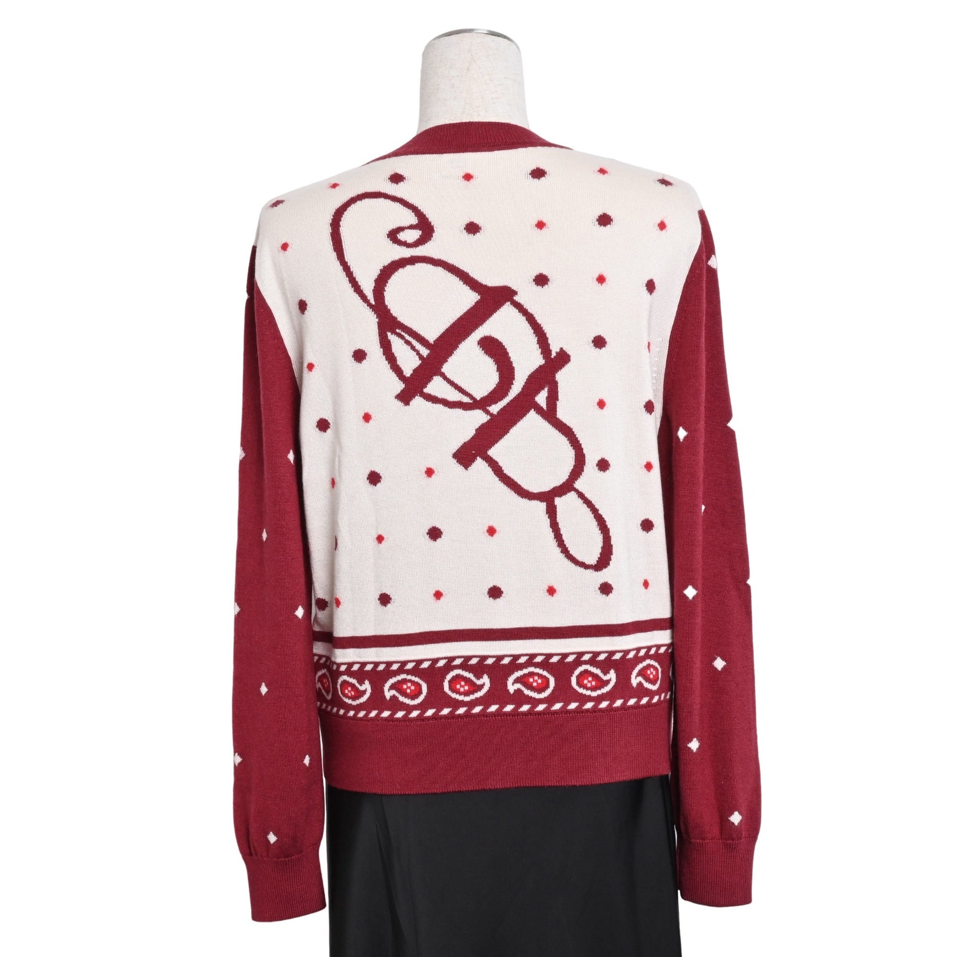 カーディガン カシミア ホワイト ボルドー 40